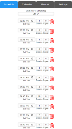 4.2.6 To add the next time you want the bell to ring hit the + sign under the first schedule and it will display a second line for you need to complete the information for the second bell