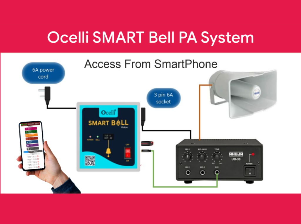 Ocelli presents the Automatic Smart Voice Bell, a breakthrough in time management technology. This innovative device seamlessly automates bell schedules through voice commands, ensuring precise alerts and announcements in educational and institutional environments. With its user-friendly interface and advanced features, Ocelli’s Smart Voice Bell revolutionizes traditional notification systems, providing a smarter, more efficient solution for enhancing productivity and organization.